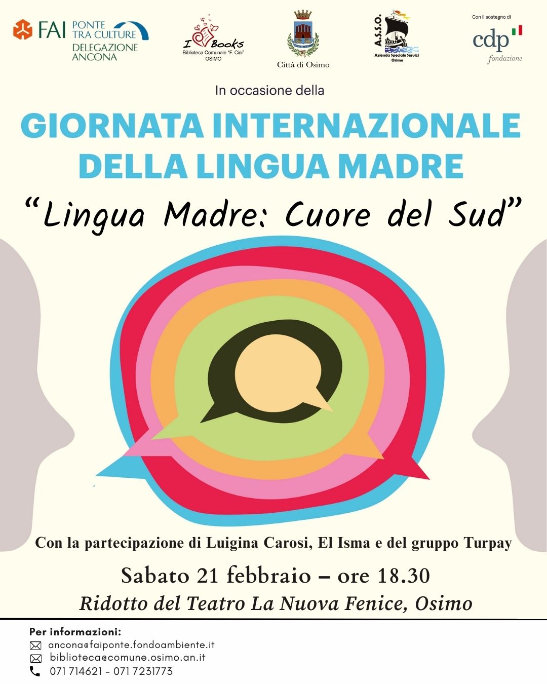 In occasione della Giornata Internazionale della Lingua Madre, in collaborazione con il gruppo interculturale Fai Ponte tra Culture – Delegazione Ancona, assisteremo ad un evento tra poesia e musica dedicato alle voci femminili del Sud America: Gabriela Mistral, Adela Zamudio e Alfonsina Storni.