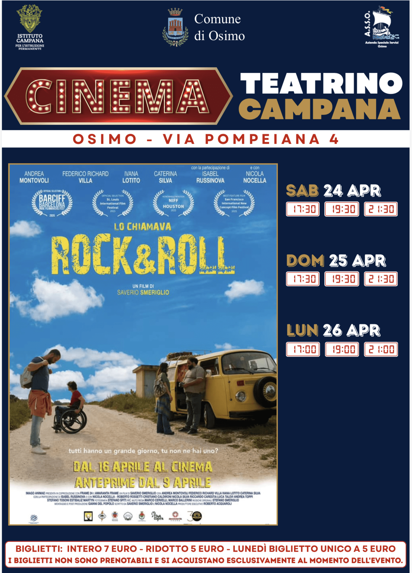 Lunedì 26 aprile ore 17:00, 19:00 e 21:00
