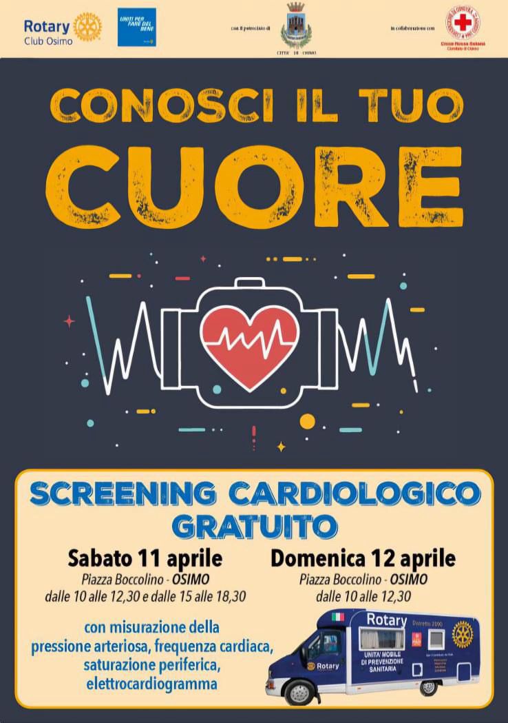 Dopo il successo dell’anno scorso a Filottrano, il nostro Club in collaborazione con la Croce Rossa di Osimo vi invita all’evento “Conosci il Tuo Cuore”. 11 e 12 Aprile saremo presenti in piazza Boccolino a Osimo per offrire screening gratuito a tutta la cittadinanza presente.