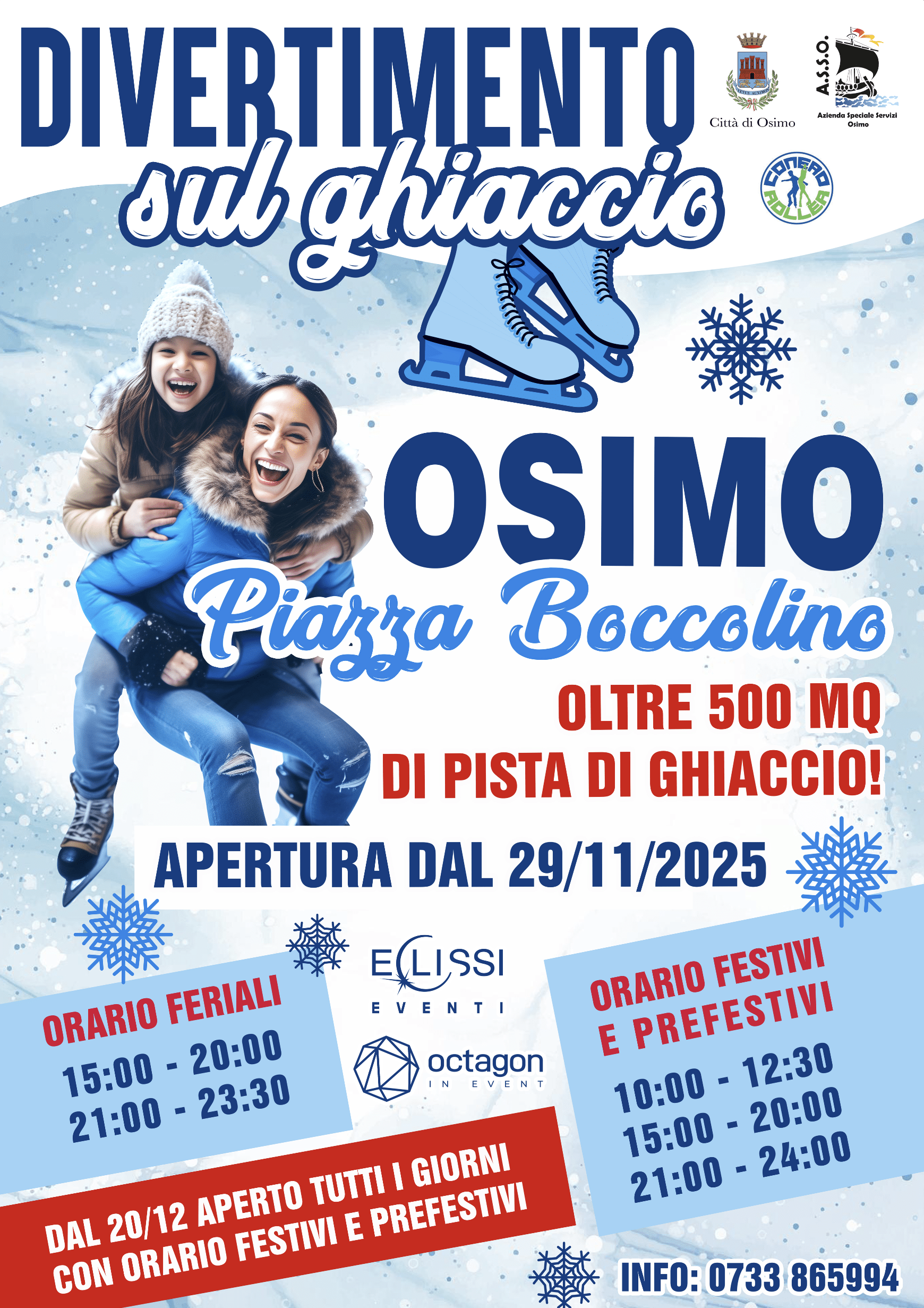 LA GRANDE PISTA DI PATTINAGGIO DI OSIMO – orari e giorni di apertura Articolo pubblicato:6 Dicembre 2025 Categoria dell'articolo:Eventi / EVIDENZA Esibizione inaugurale della Conero Roller