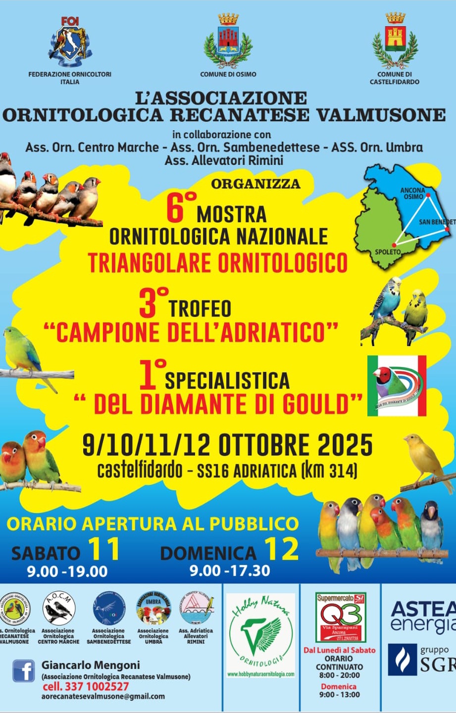 MOSTRA ORNITOLOGICA 9/12 ottobre Articolo pubblicato:6 Ottobre 2025 Categoria dell'articolo:Eventi / EVIDENZA