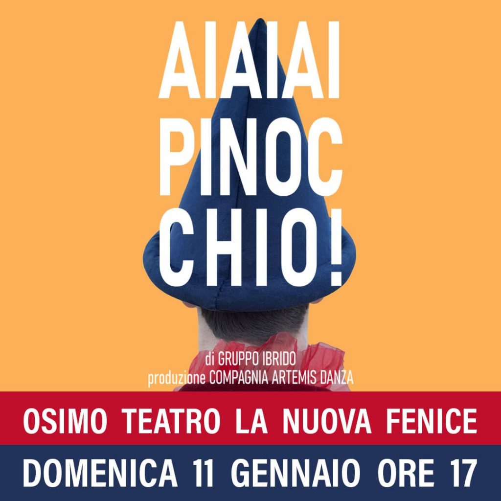“AiAiAi Pinocchio!” di Gruppo Ibrido/Artemis Danza è il nuovo titoloproposto domenica 11 gennaio al Teatro La Nuova Fenice di Osimo per Famiglia a teatro il cartellone dedicato ai più piccoli realizzato da Comune e ASSO in collaborazione con AMAT con contributo di MiC e Regione Marche.